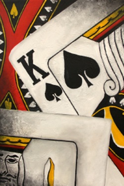 Wolkow’s exhibit is titled “Following Suit” and will include a lithograph; pottery; sculptures; black-and-white photography; and oil, acrylic and mixed media paintings. Her work focuses on family traditions—such as her grandfather’s love of butterflies, her father’s and great-grandmother’s enthusiasm for playing cards, and her grandmother’s gift of quilting—as well as her intellectual interests, such as her appreciation for ancient Greek philosophers, artists and writers.