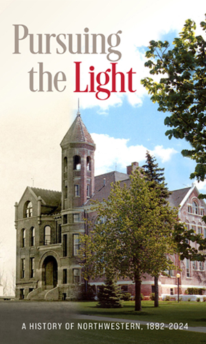 The nearly 400-page book features nine chapters presenting Northwestern’s history chronologically, as well as seven chapters on athletics, more than 125 photos from the archives, and 40 sidebar articles on people and topics important to the institution. “Pursuing the Light” also includes extensive appendices, such as enrollment figures and lists of campus buildings over the years, principals and presidents, chaplains/pastors, head coaches and Athletic Hall of Fame inductees.