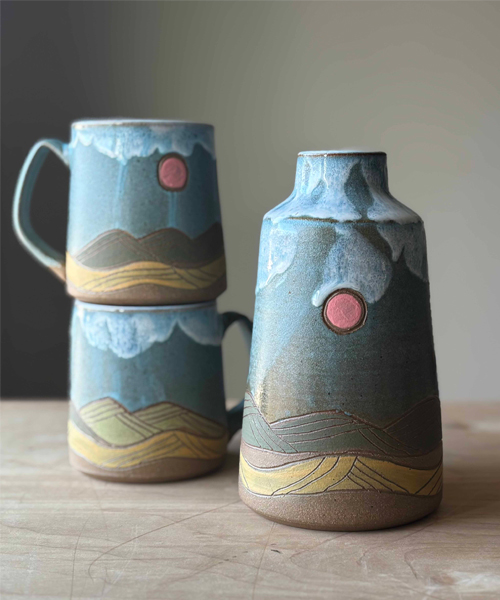Whigham’s work is created with the user in mind. Each piece is wheel-thrown from midrange stoneware or porcelain and then hand-carved with patters and textures inspired by the earth. “My work is created to be simple yet enticing to the viewer—inviting them to hold and use,” Whigham say. While she incorporates color and texture, functionality remains central to her craft.