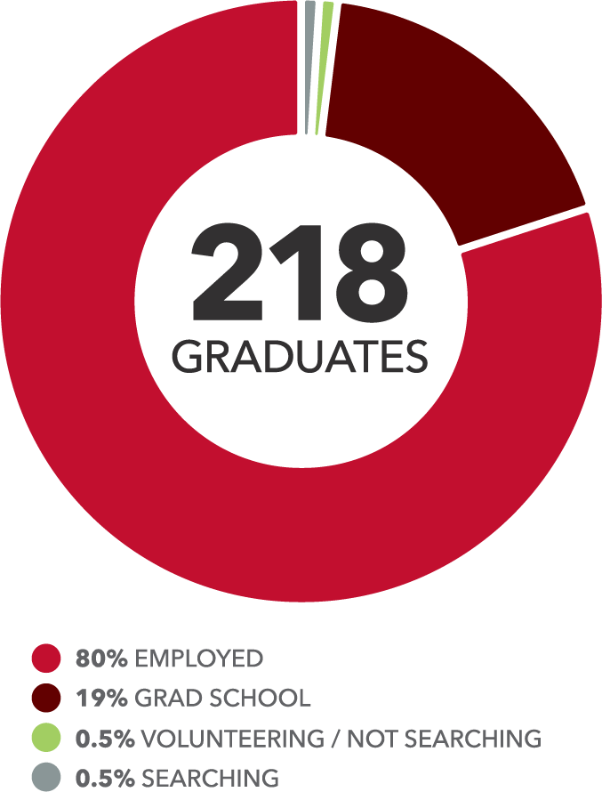 Resultados de la Promoción 2024 en español| First destination data shows that 99.5% of the class of 2024* were gainfully employed or continuing their education within six months of graduation. From landing jobs at some of the most sought-after companies to enrolling in the nation’s top graduate schools, it is clear that our graduates stand out. * 218 graduates; statistics based on a 100% response rate. Data was compiled by Northwestern’s Compass Center for Career & Calling using the First-Destination Survey of the National Association of Colleges and Employers (NACE) and following NACE guidelines and protocols. |