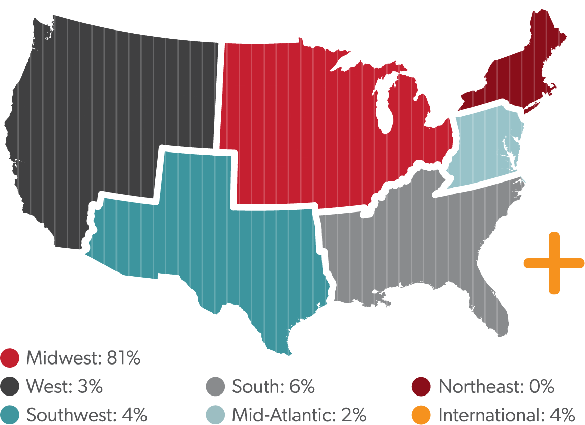 Of those graduates who reported their geographical location, 54% are living and/or working in Iowa.