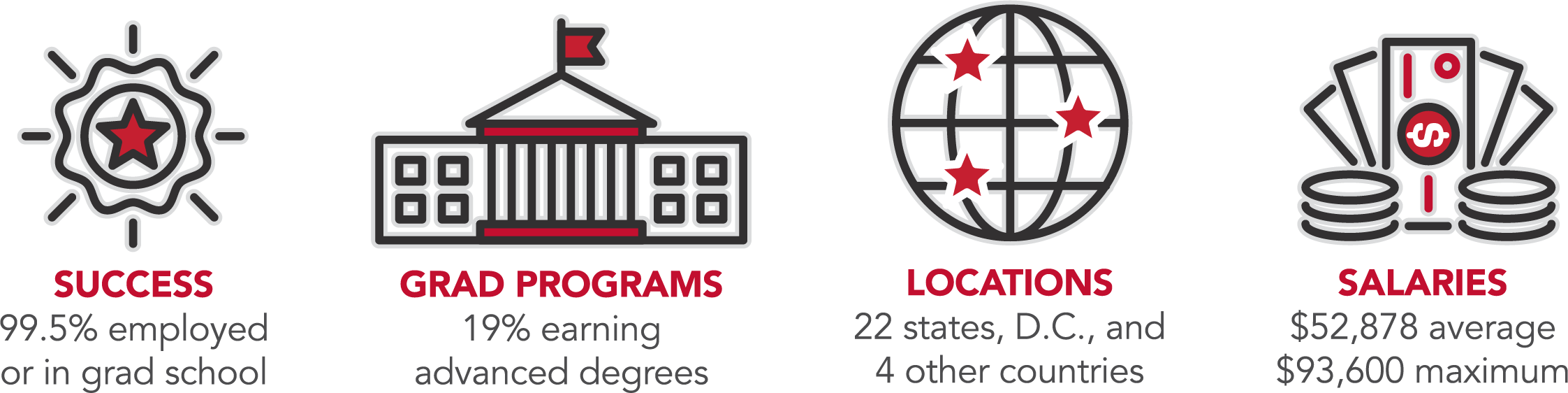 Members of the class of 2024 are now living and working in 22 states, Washington, D.C., and four other countries around the world.