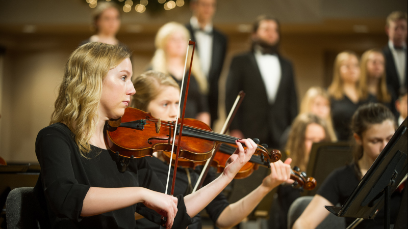 This year’s program delivered the story of the Jesus child, including the angel Gabriel’s announcement to Mary, the procession of shepherds and wise men to the manger, and the virgin birth. The concert featured performances by the Brass Choir, Women’s Choir, A cappella Choir and Chamber Orchestra. It was presented in Christ Chapel on Dec. 3 and 4.