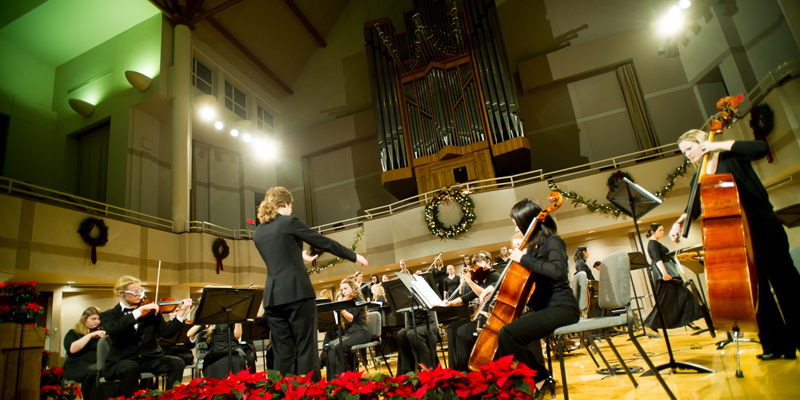 The Women’s Choir will sing Dorian Kelly’s “Hodie Christus Natus Est,” Craig Courtney’s arrangement of “Breath of Heaven” by Chris Eaton and Amy Grant, and the traditional English melody “Coventry Carol.” The ensemble will also present Dan Forrest’s “The First Noel,” and will perform with the A cappella Choir and Chamber Orchestra during a rendition of “Night of Silence” by Daniel Kantor, arranged by John Ferguson.