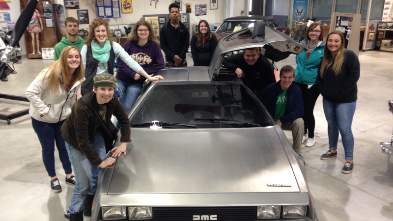 On April 8 students visited the Mid-American Museum of Aviation and Transportation in Sioux City, Iowa. Larry Finely, director of the museum, provided students with a guided tour and the opportunity to sit inside a DeLorean, a model car made famous by the “Back to the Future” movies.
